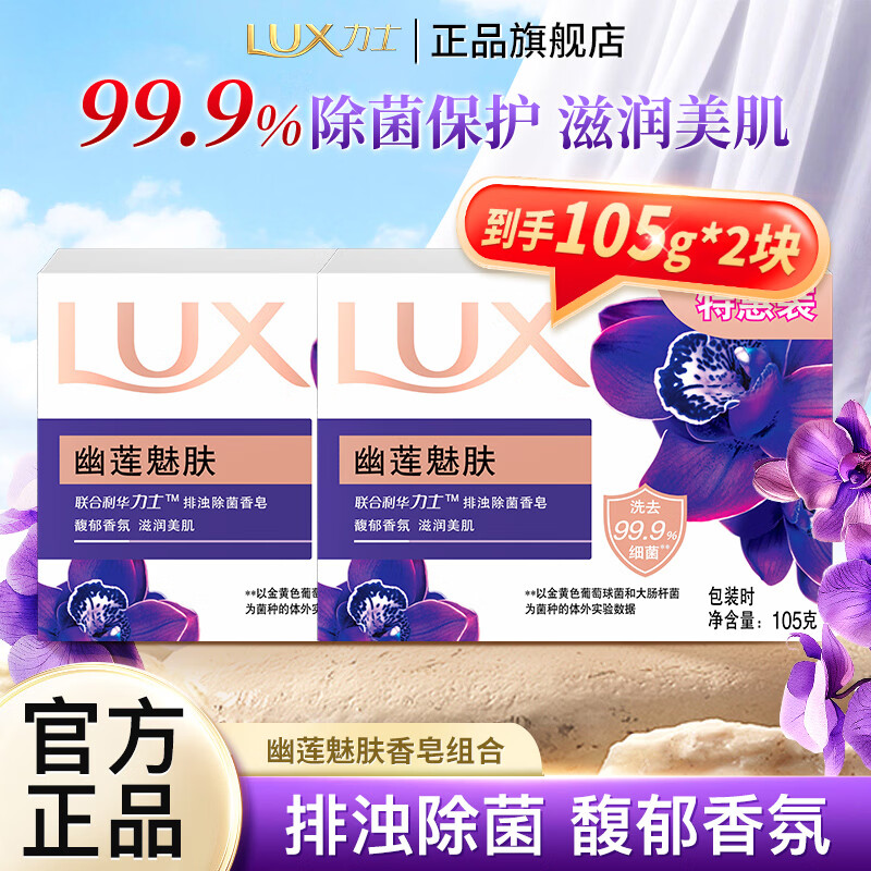 跳转京东App弹5.01-5券 力士 排浊除菌香皂 105g*2 3.9元包邮 爱心 折1.95/块