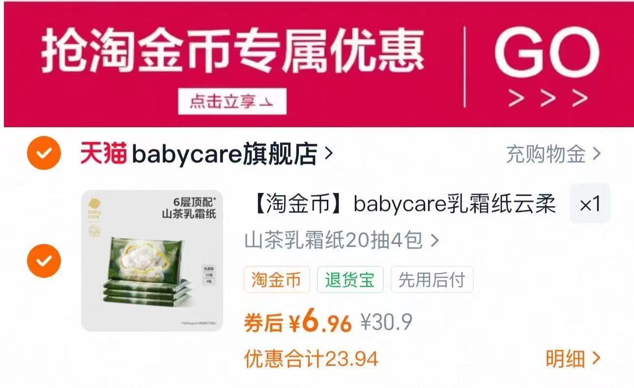 6.9亓需下拉详情拍下 babycare乳霜纸云柔巾 含:40抽*5包 乳霜纸20抽好单发报员2026年03月02日 11:500举报 6.9亓需下拉详情拍下babycare乳霜纸云柔巾含:40抽*5包 乳霜纸20抽https://m.tb.cn/h.ibgnOqm复制文案