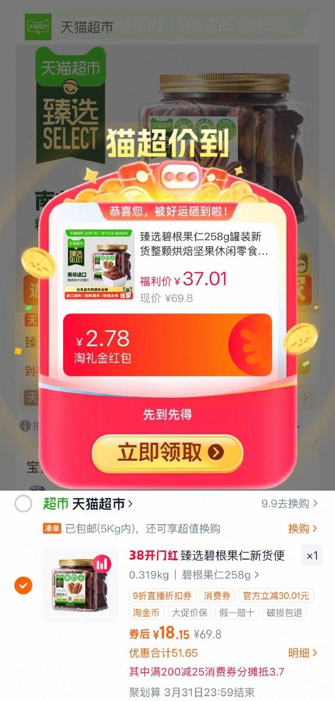 合理凑单用200-25红包或消费券