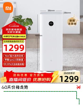 8折 米家小米空气净化器4Max专业级除甲醛除异味除菌家用大空间 99.99%灭活强性能 小米空气净化器4Max ---- 普遍有货 | 下1件最优