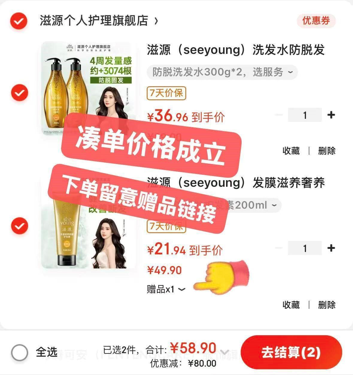 ——滋源个护凑单车——