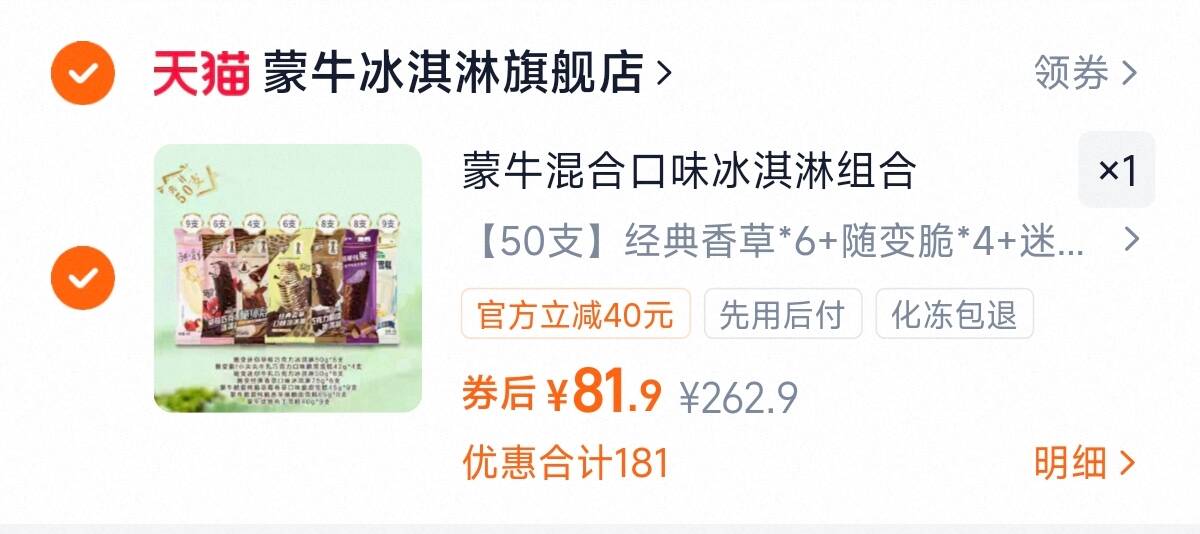 蒙牛经典冰淇淋雪糕 折1.6/支!组合50支81元.9好单发报员2026年03月02日 18:000举报 蒙牛经典冰淇淋雪糕折1.6/支!组合50支81元.9https://m.tb.cn/h.ibma927复制文案