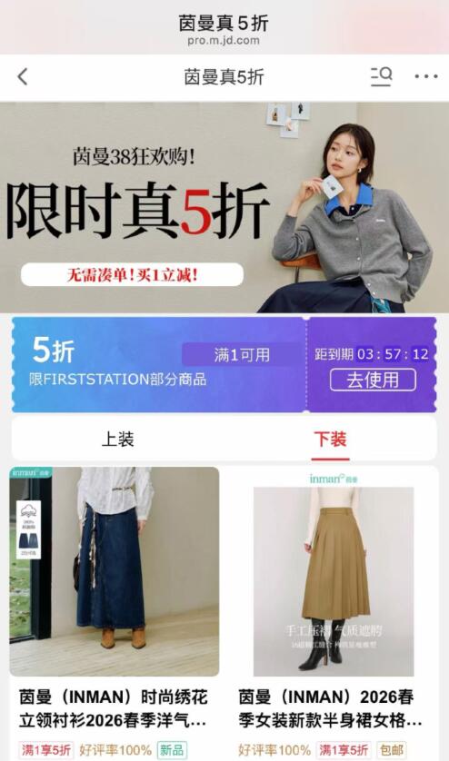 女装限时5折专区 领5折劵 -好单发报员2026年03月02日 20:130举报 ——女装限时5折专区——领5折劵-https://u.jd.com/NDC0Yui茵曼 外套/T恤/针织/裙子多款式 女装专区-https://u.jd.com/NGC8vp4————任选1件;49起复制文案