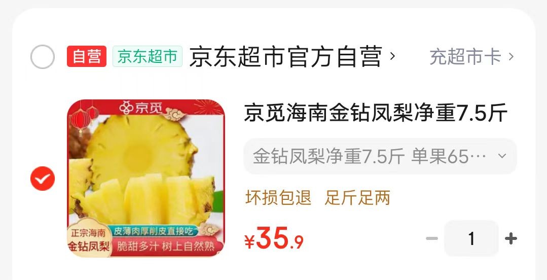 刚需,京觅 海南金钻凤梨净重7.5斤单果650g起树上熟【35.9】