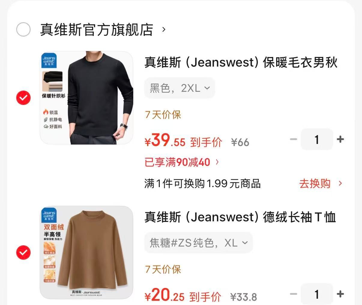真维斯 (Jeanswest)保暖毛衣 德绒7A级抗菌长袖T恤,各拍1件【59.8】