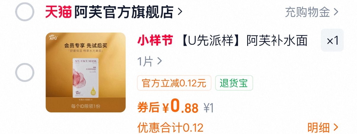 入会0.88亓阿芙补水面膜玫瑰精油护肤水亮面膜1片 好单发报员 2026年03月03日 16:03 0 举报 入会0.88亓阿芙补水面膜玫瑰精油护肤水亮面膜1片https://m.tb.cn/h.icRY71o 复制文案