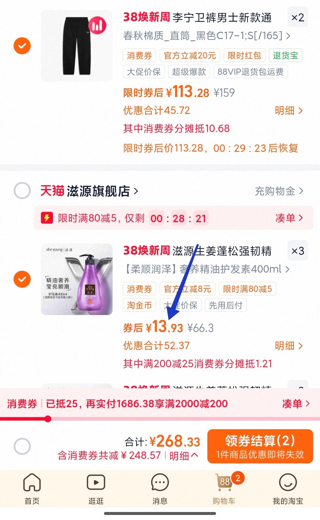 ③凑单裤子加购 复制本消息打开桃宝查看 根据消费券大小提高凑单件数 好单发报员 2026年03月05日 14:25 0 举报 ③凑单裤子加购https://m.tb.cn/h.i2ZtrfB复制本消息打开桃宝查看根据消费券大小提高凑单件数直到显示凑满消费券滋源洗发水3瓶39元左右划13亓一瓶 史低好价! 复制文案