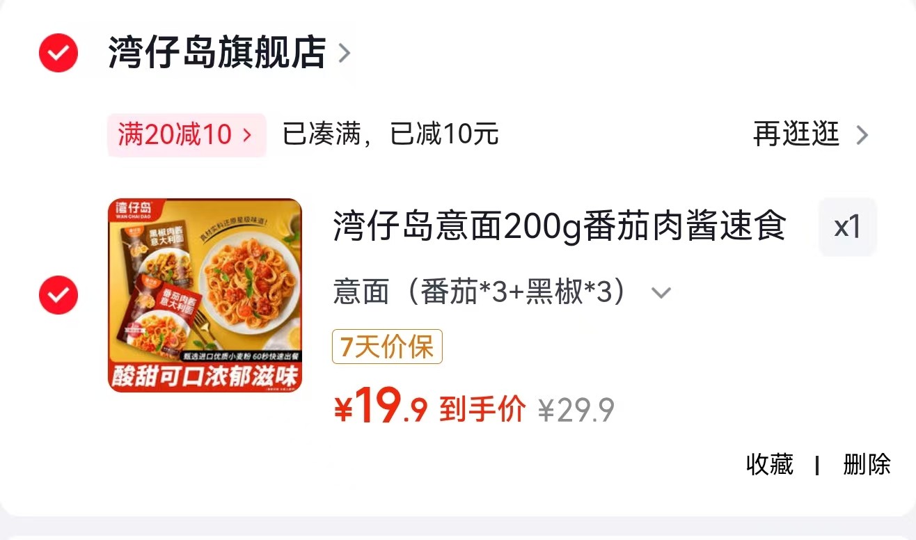 湾仔岛意面 200g番茄肉酱速食 (番茄*3 黑椒*3)【19.9】