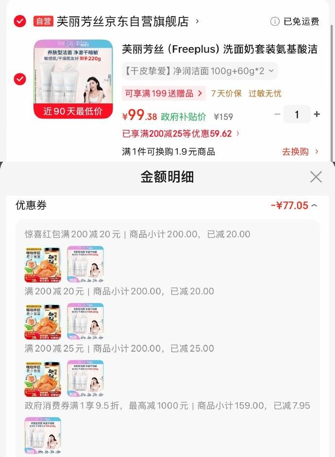 芙丽芳丝(Freeplus)洗面奶100g 60g*2