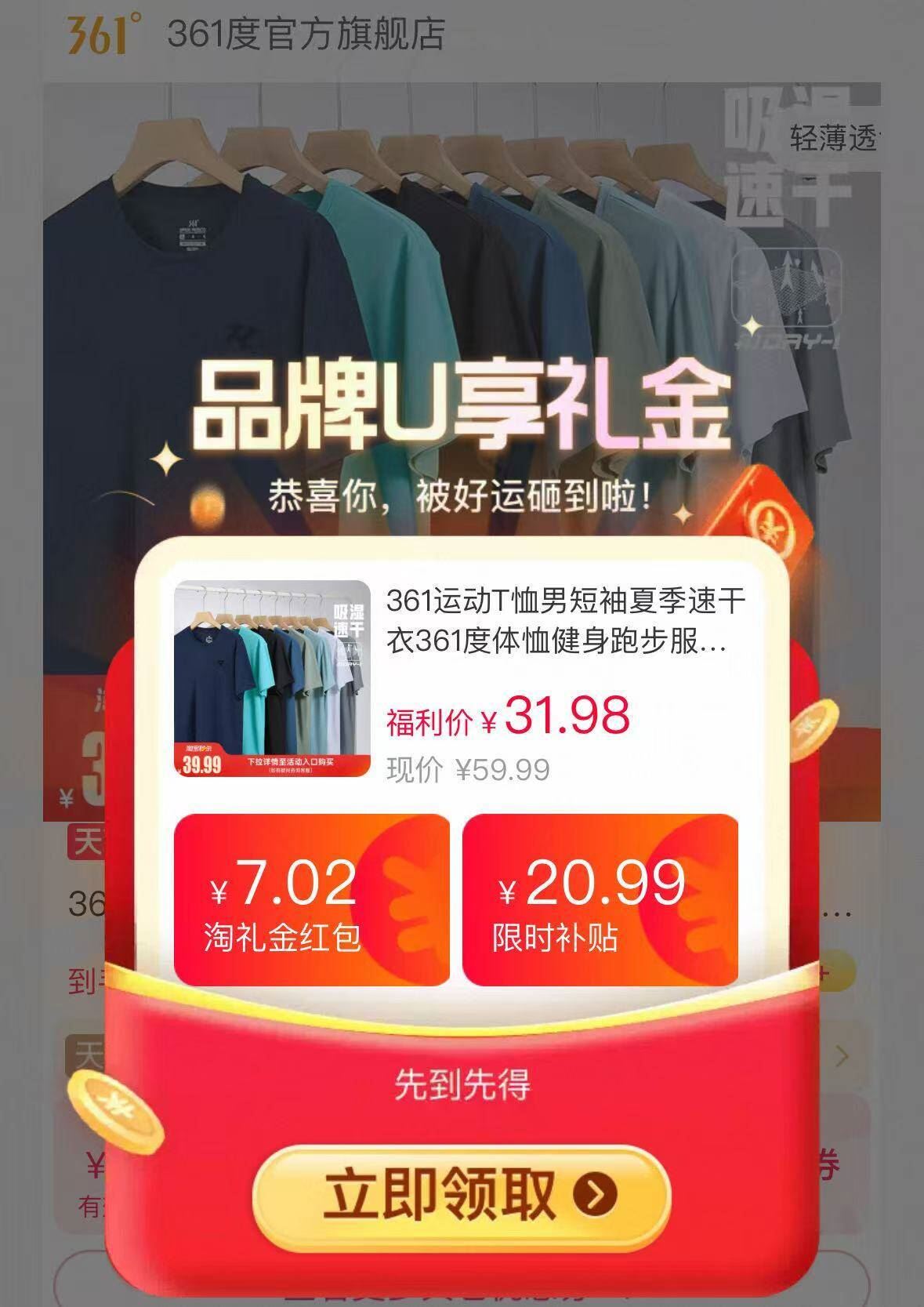 25元361运动T恤男短袖
