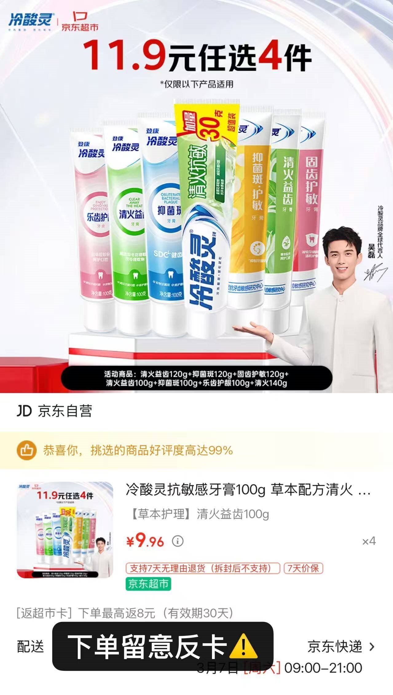 冷酸灵牙膏任选車 自营 牙膏100g/120g/140g 任选4件19.9亓 U,Plus包邮