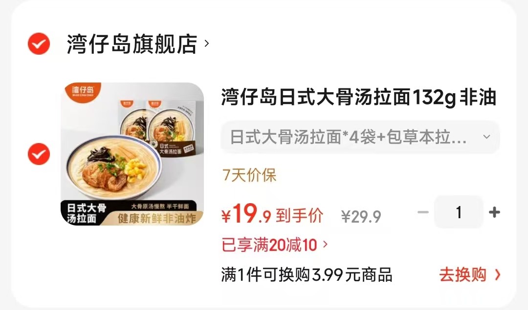 湾仔岛 拉面132g 日式大骨汤拉面*4袋 包草本拉面*4袋【19.9】