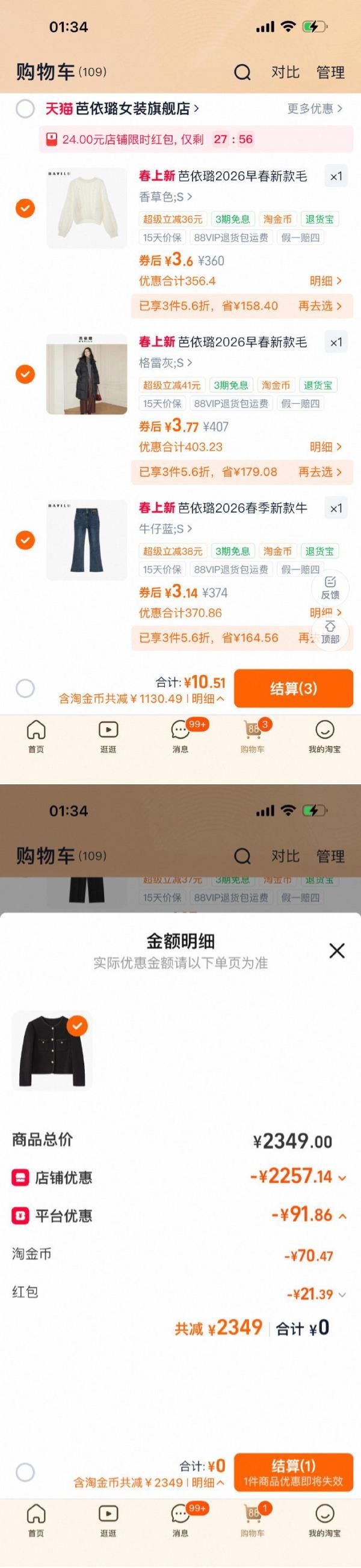自辩 芭依璐女装,弹24红包,3件5.6折,低价