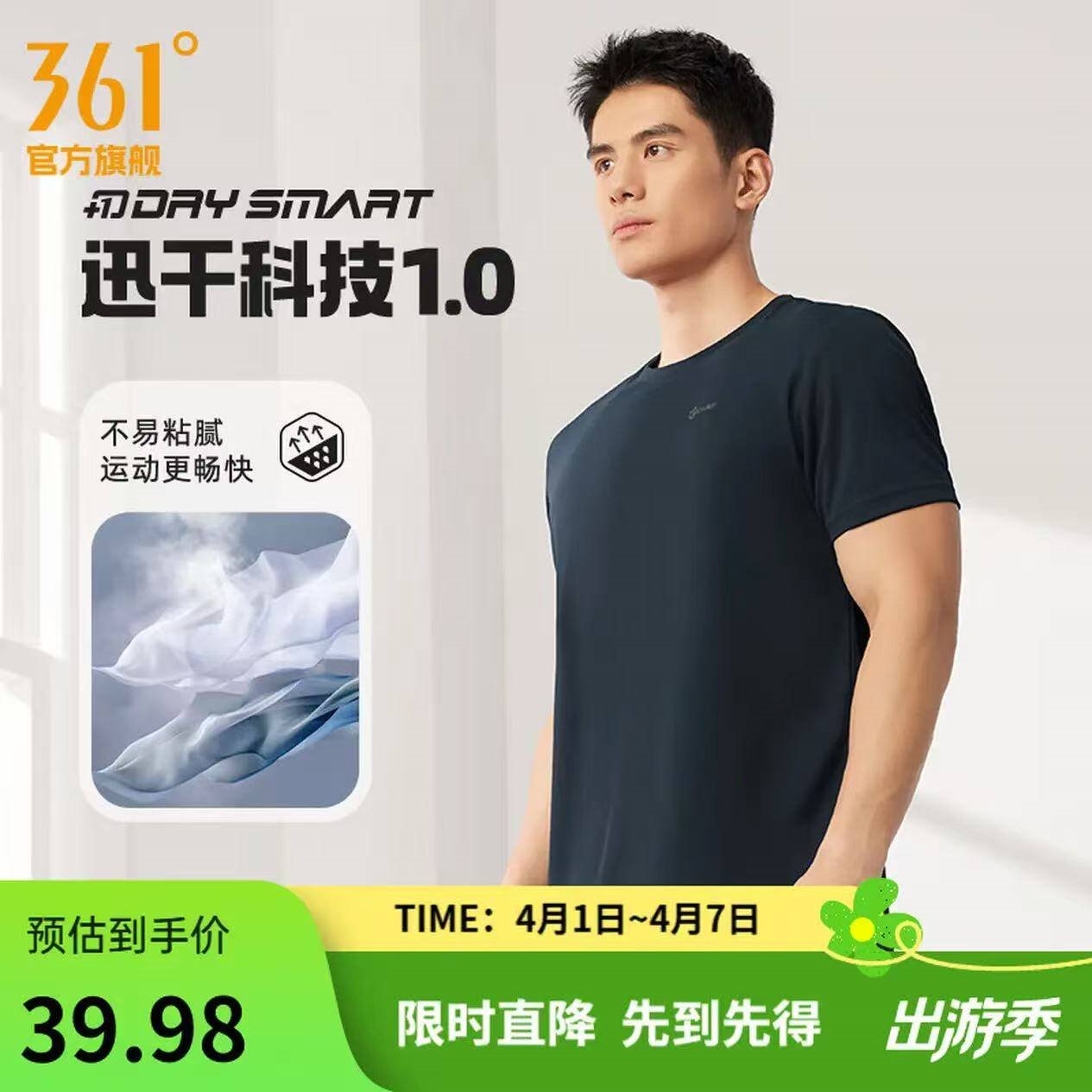 361度 男士圆领运动短袖T恤