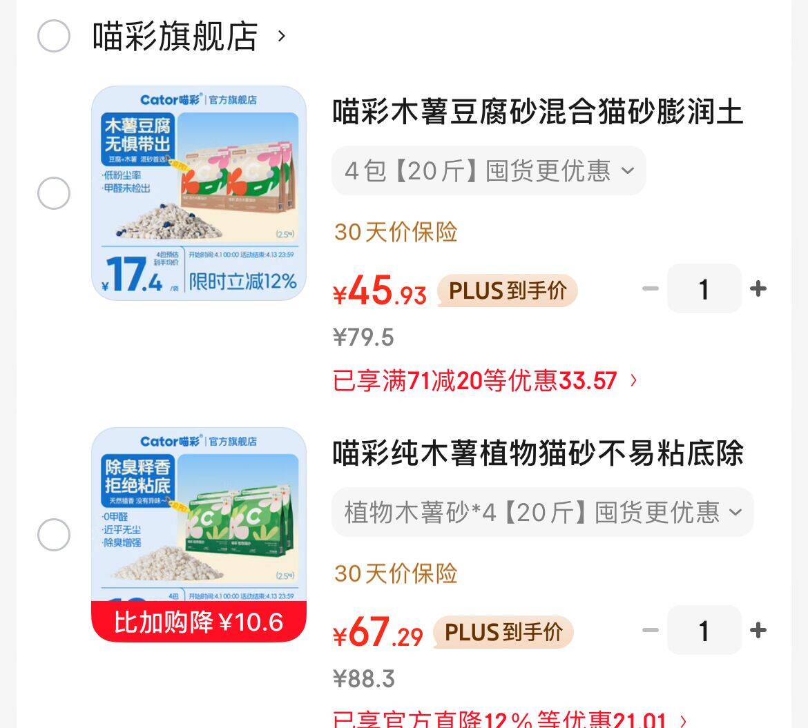 喵彩纯木薯猫砂2.5kg*4包