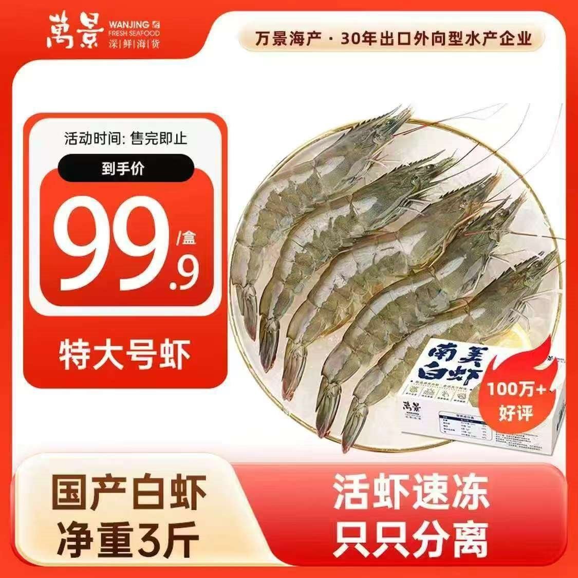 萬景 北海鲜冻国产白虾净重3斤 89.9元