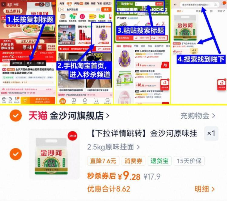 金沙河挂面面条5斤 9元发报员Z2026年04月06日 11:300举报 金沙河挂面面条5斤9元-1.拿券复制标题,先不用拍2.淘宝首页,进入秒刹频道3.粘贴标题搜索找到再啪下https://m.tb.cn/h.ilaL4cN复制文案