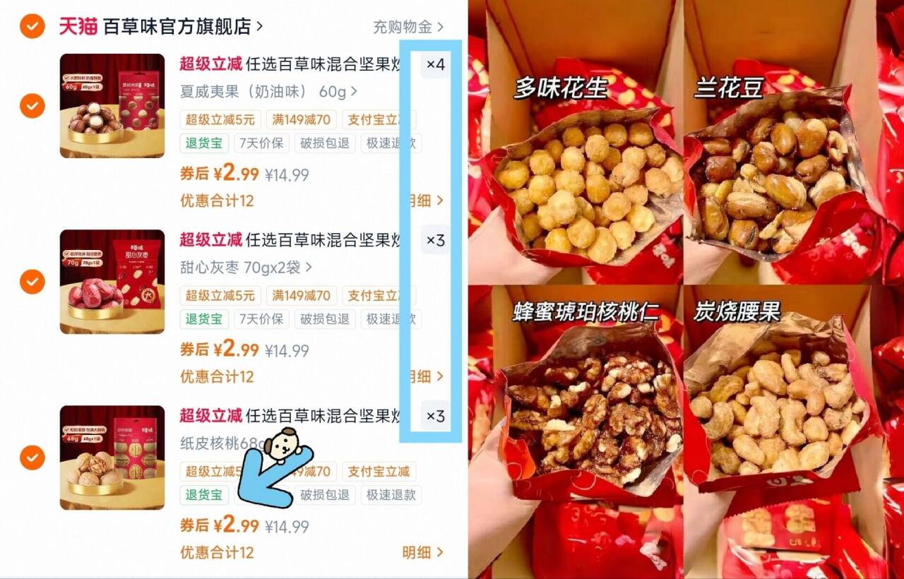 百草味坚果零食任选10件 29.9元发报员Z2026年04月07日 13:570举报 1.45/件 百草味坚果 拍10件29.9 最多到手20袋---【百草味】坚果零食任选10件复制这条信息打开手机陶宝https://m.tb.cn/h.iOMWKs5有夏威夷果/腰果/核淘等它家任选很少有!别错过复制文案