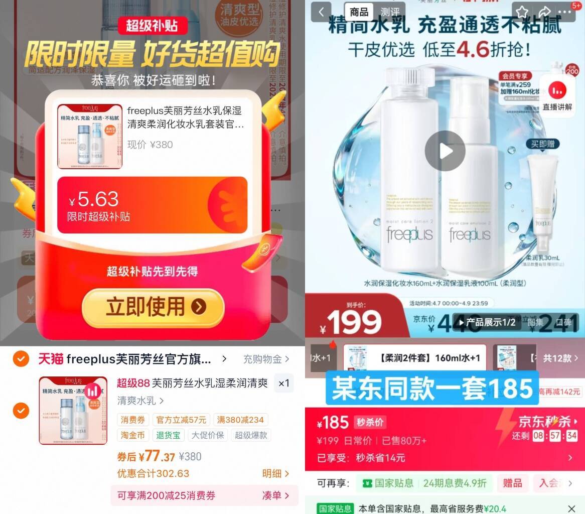 芙丽芳丝水130ml 乳液100ml 77.3元发报员Z2026年04月07日 16:340举报 两位数拿下一套正装 77.3元芙丽芳丝水130ml 乳液100ml自动跳转叠琻币 注意有效期!主打纯基础保湿成分精简安心~https://m.tb.cn/h.iOrRIo1复制文案