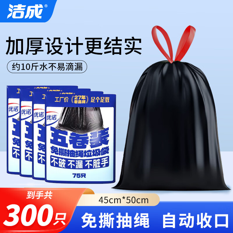 19.9元 洁成 抽绳垃圾袋 300只