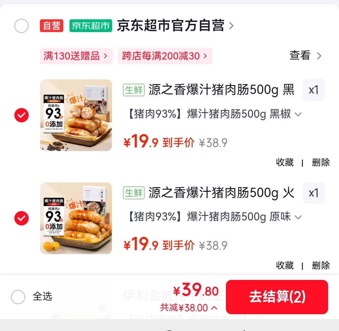 任选2! 火山石烤肠500g
