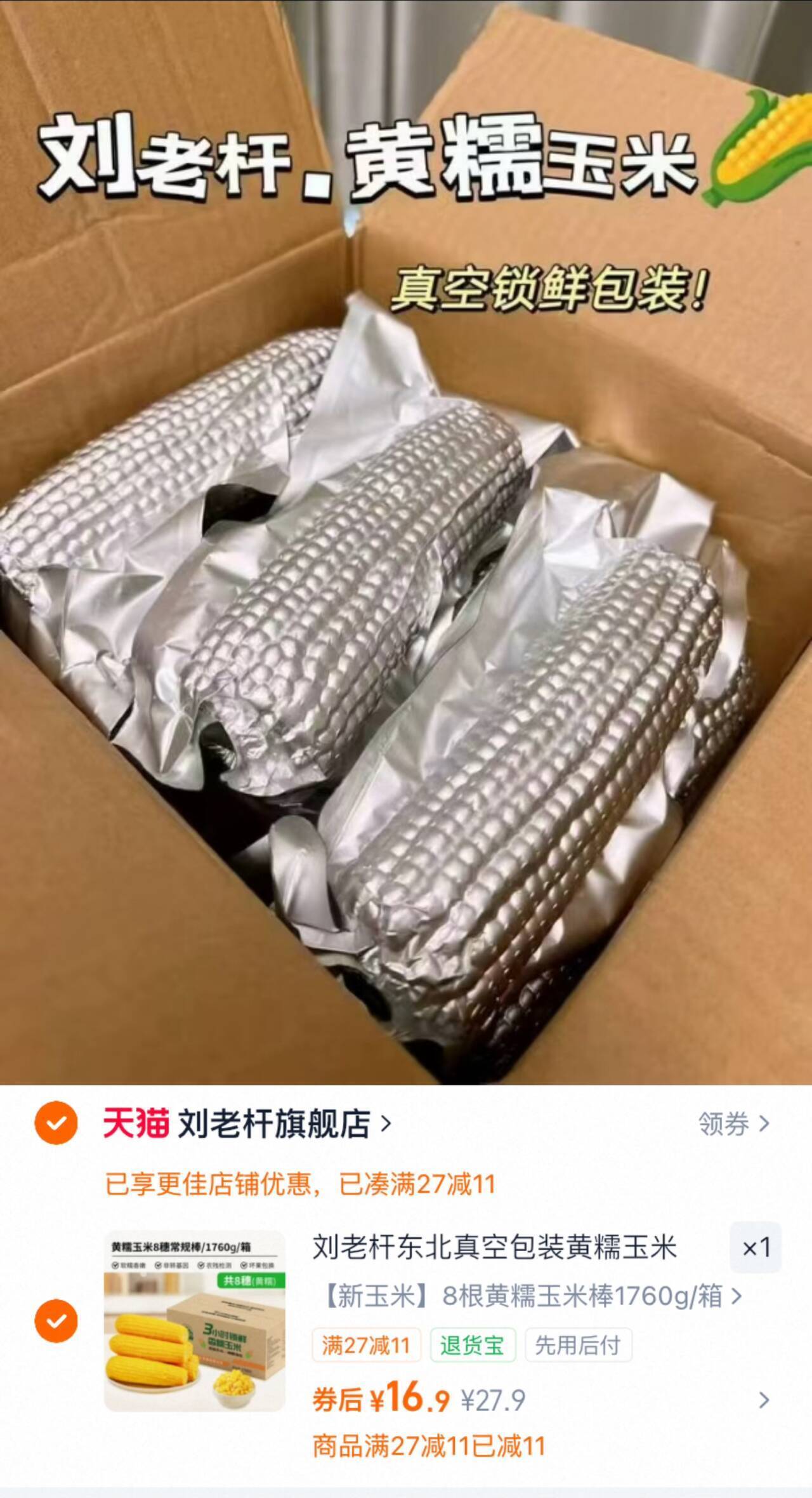 刘老杆黄糯玉米8根 16.9元发报员Z2026年04月08日 15:280举报 薅!吃完了继续来布货 単根220g大克重!一根才2元刘老杆 黄糯玉米8根16.9元属于只要不停产一直会回购系列https://m.tb.cn/h.iNKcHal复制文案