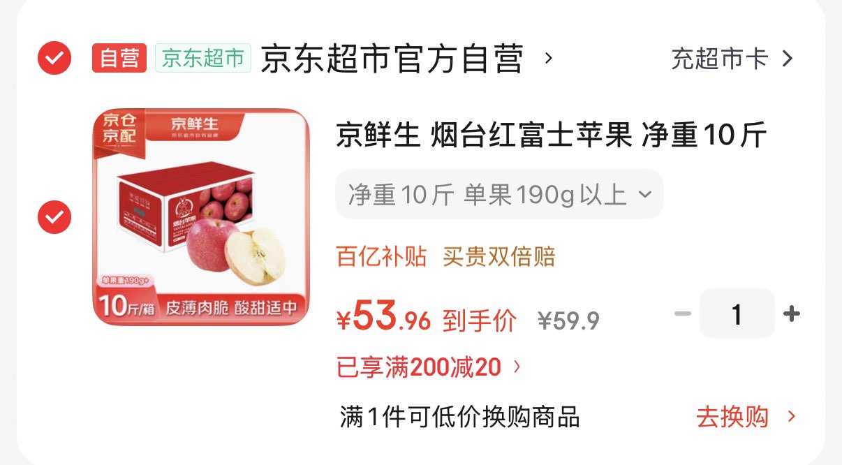 咽台红富士苹果净重10斤 53.9元发报员Z2026年04月24日 13:080举报 咽台红富士苹果 净重10斤 凑黑五券后53.9元https://u.jd.com/fOwKpU4 凑https://u.jd.com/fGwy90O 复制文案