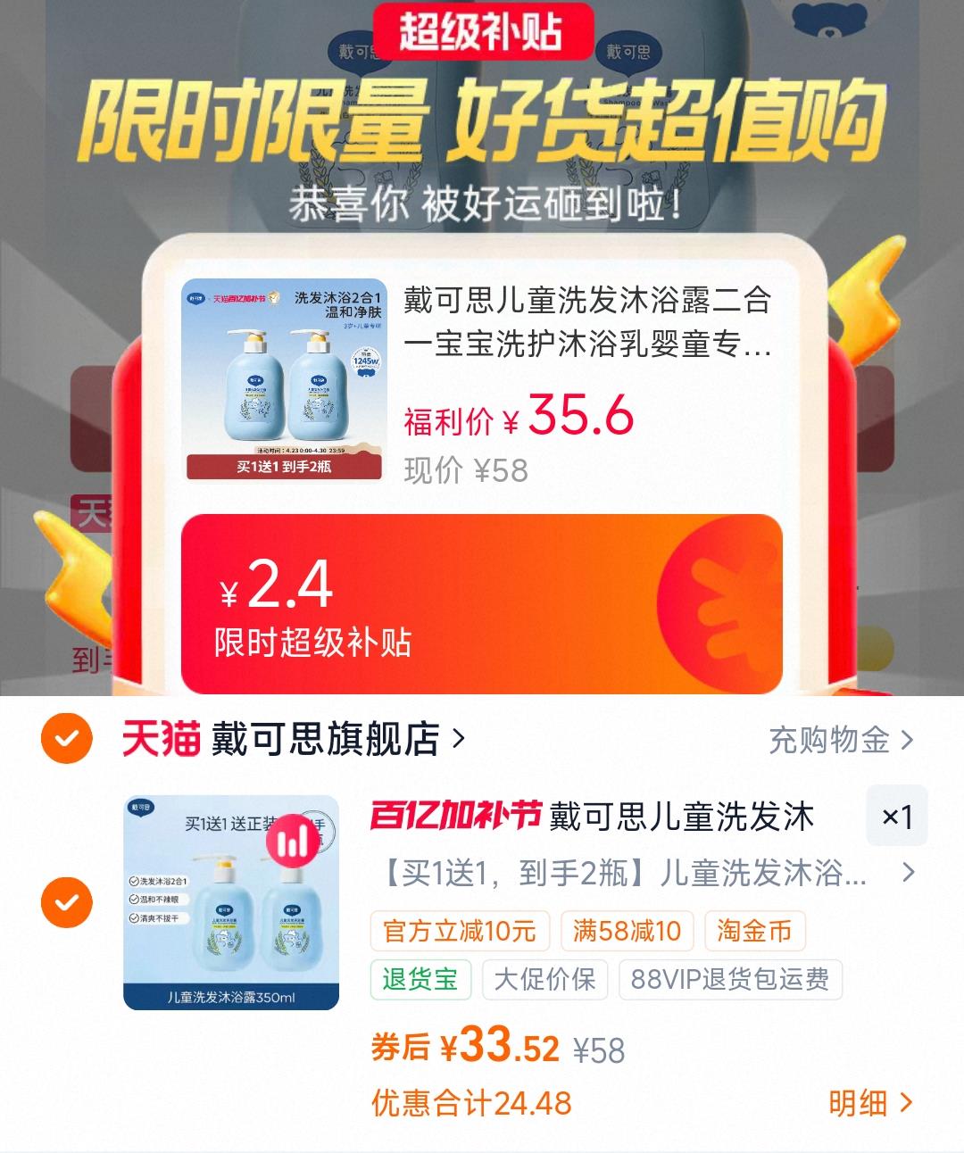 戴可思儿童洗沐二合一350ml*2瓶 33.5元发报员Z2026年04月29日 18:310举报 33.5元 折16.7元/瓶戴可思儿童洗沐二合一350ml*2瓶https://m.tb.cn/h.iElDdlQ复制文案