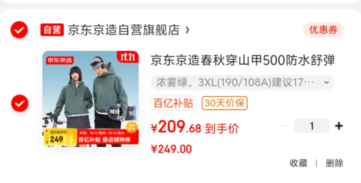 【自营】京造 穿山甲500系列防水冲锋衣单层