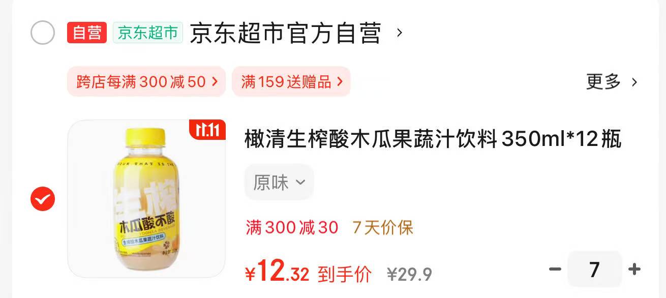 橄清生榨酸木瓜果蔬汁饮料350ml*12瓶