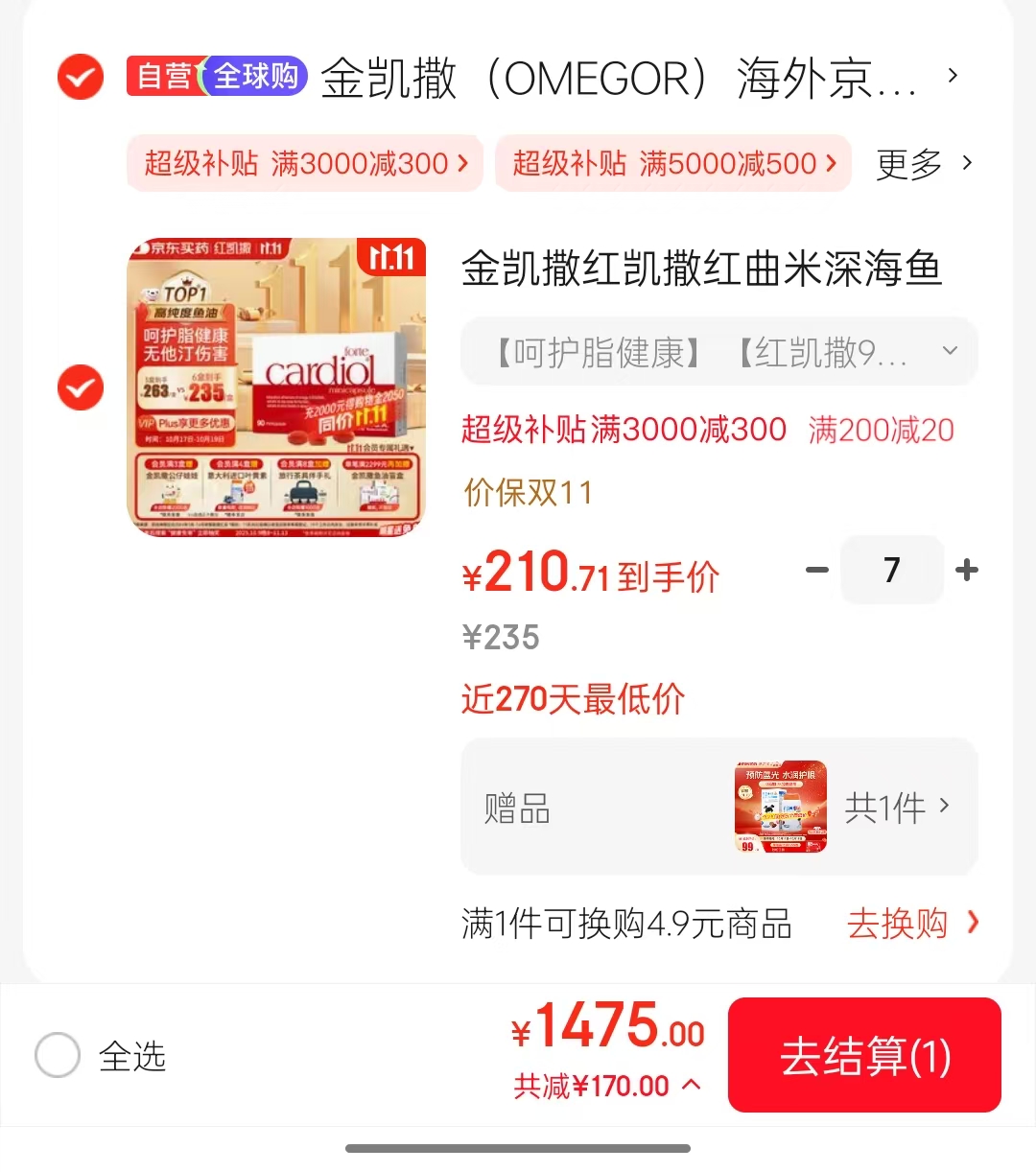 自营金凯撒 红凯撒红曲米深海鱼油软胶囊90粒/盒