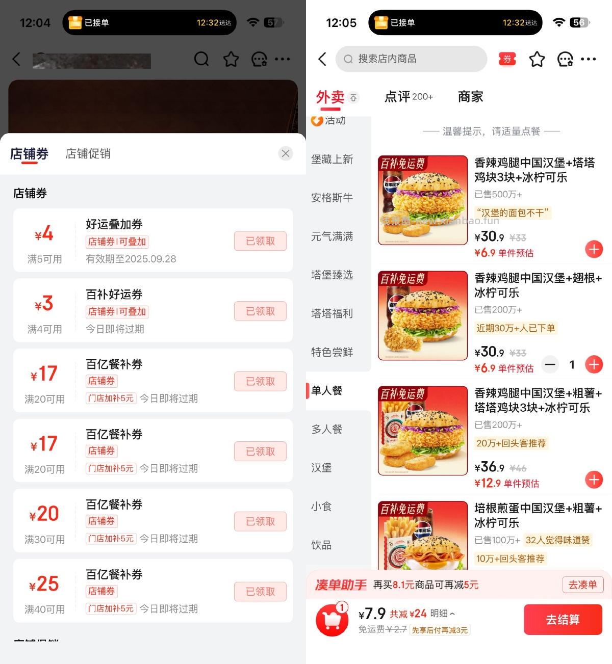 3、叠加使用!做到30-24亓哈!还有正新鸡排这些店都可以!这价格无敌了~