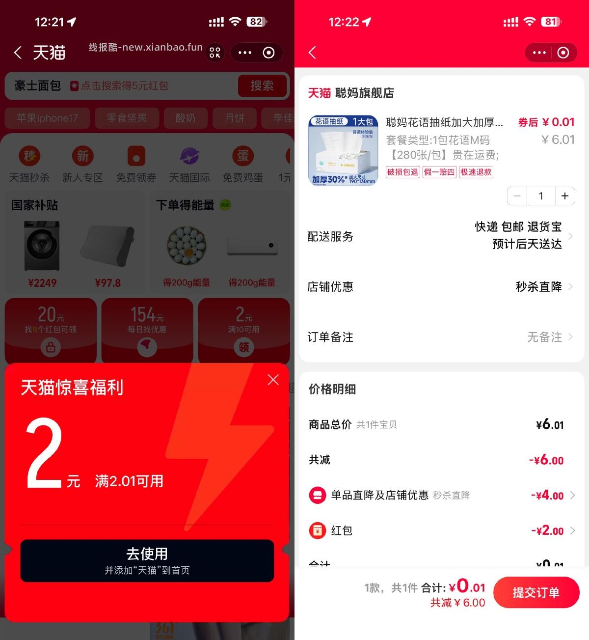 支付宝领2亓天猫红包0撸实物小刀2025年10月11日 12:230举报支付宝搜索“天猫”->点小程序进入活动->自动弹2亓红包,随便找个便宜的东西买即可复制文案原文地址:https://www.x6d.com/i-wz-30043.html版权声明:本站作为免费线报整合平台,文章快照抓取源于网络。临时存储未经验证,本站不参与任何平台活动,请自行甄别,谨防受骗!