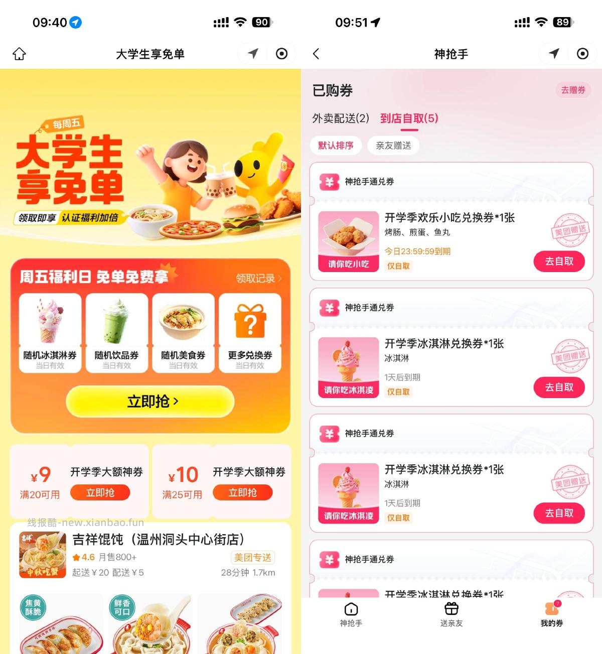 微信打开活动->直接领饮品/冰淇淋/美食随机免单券,之前认证过的上