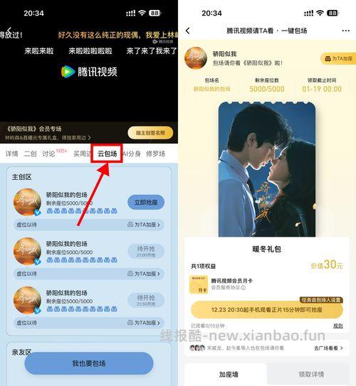 【腾讯视频云包场看剧领取会员】腾讯视频APP搜索“骄阳似我”->视频下方“云包场”->指定时间开始看视频指定时间,即可领腾讯视频会员月卡